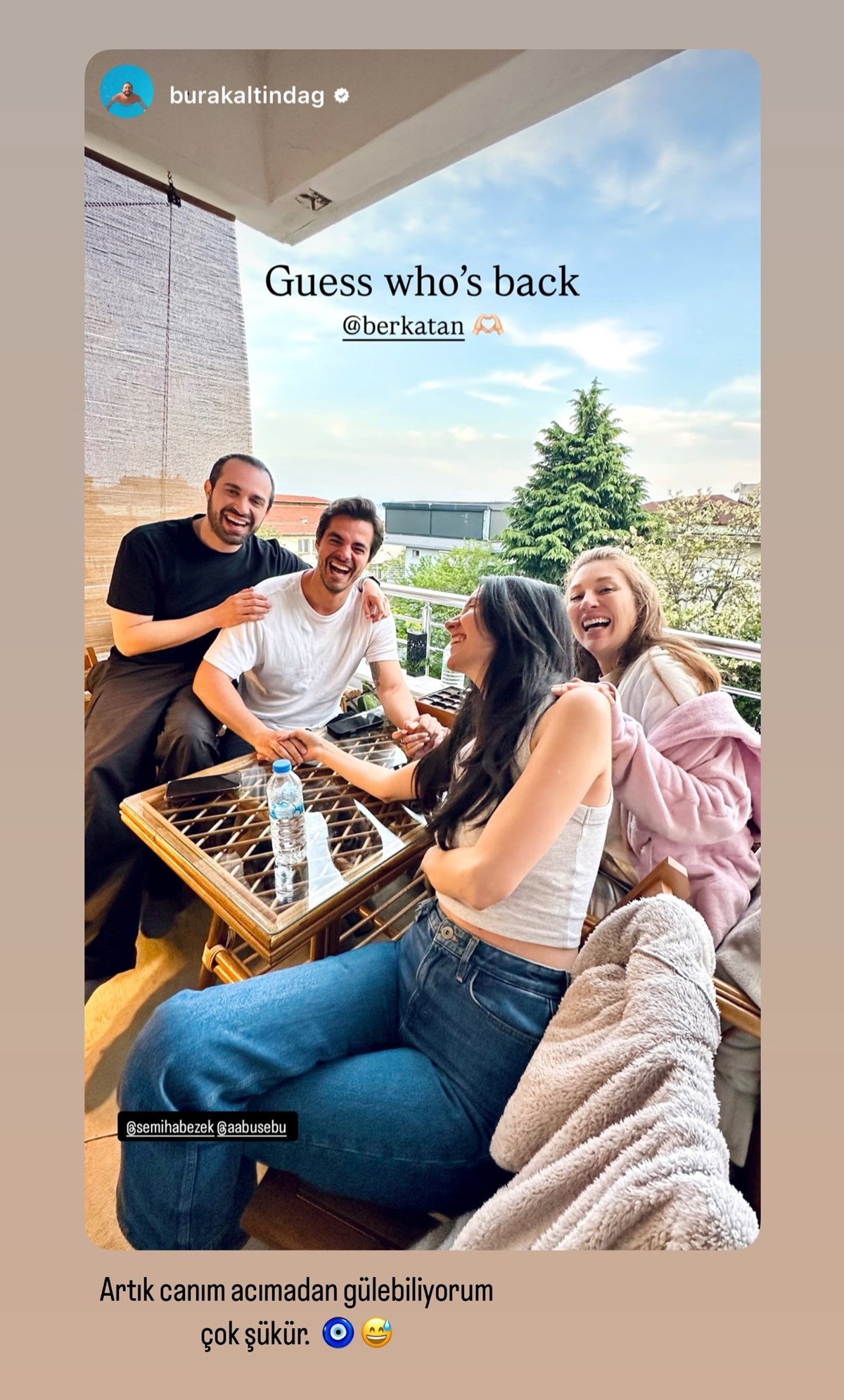 Hastaneden çıktıktan sonra arkadaşlarıyla buluşan 33 yaşındaki oyuncudan yeni paylaşım geldi. Genç oyuncu, “Artık canım acımadan gülebiliyorum çok şükür” dedi.